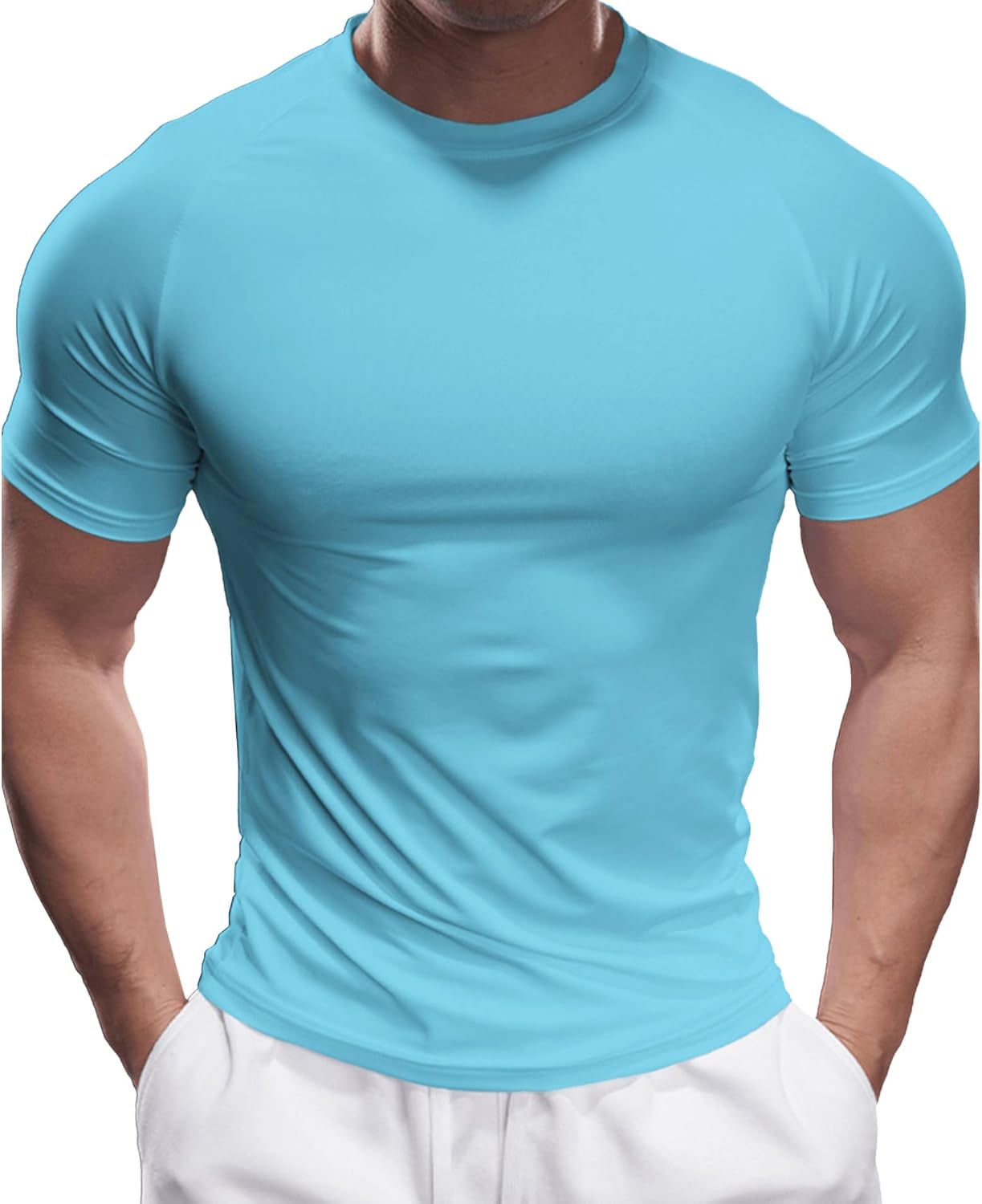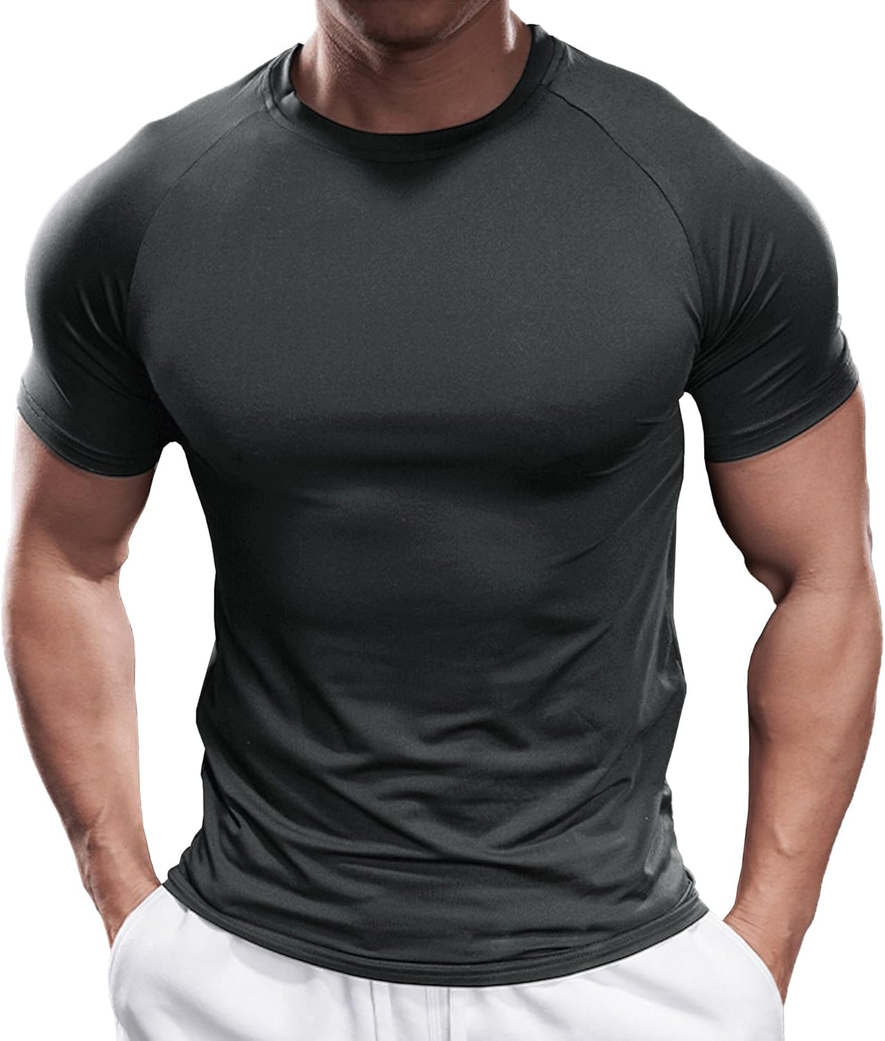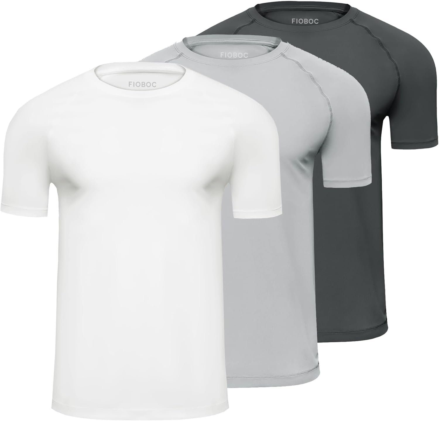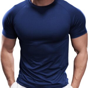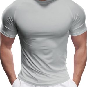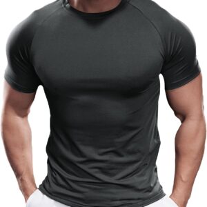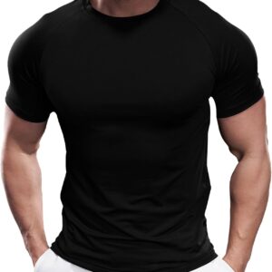 Fioboc Compression Shirts for Men Active Crew Neck Tee Moisture Wicking Quick Dry Mens Workout Shirts S-4XL