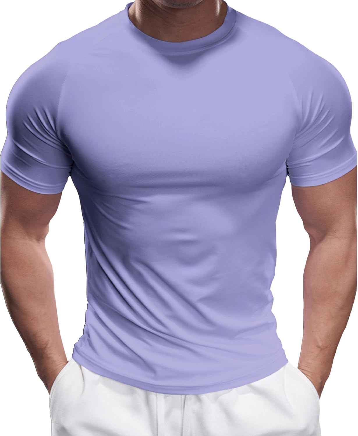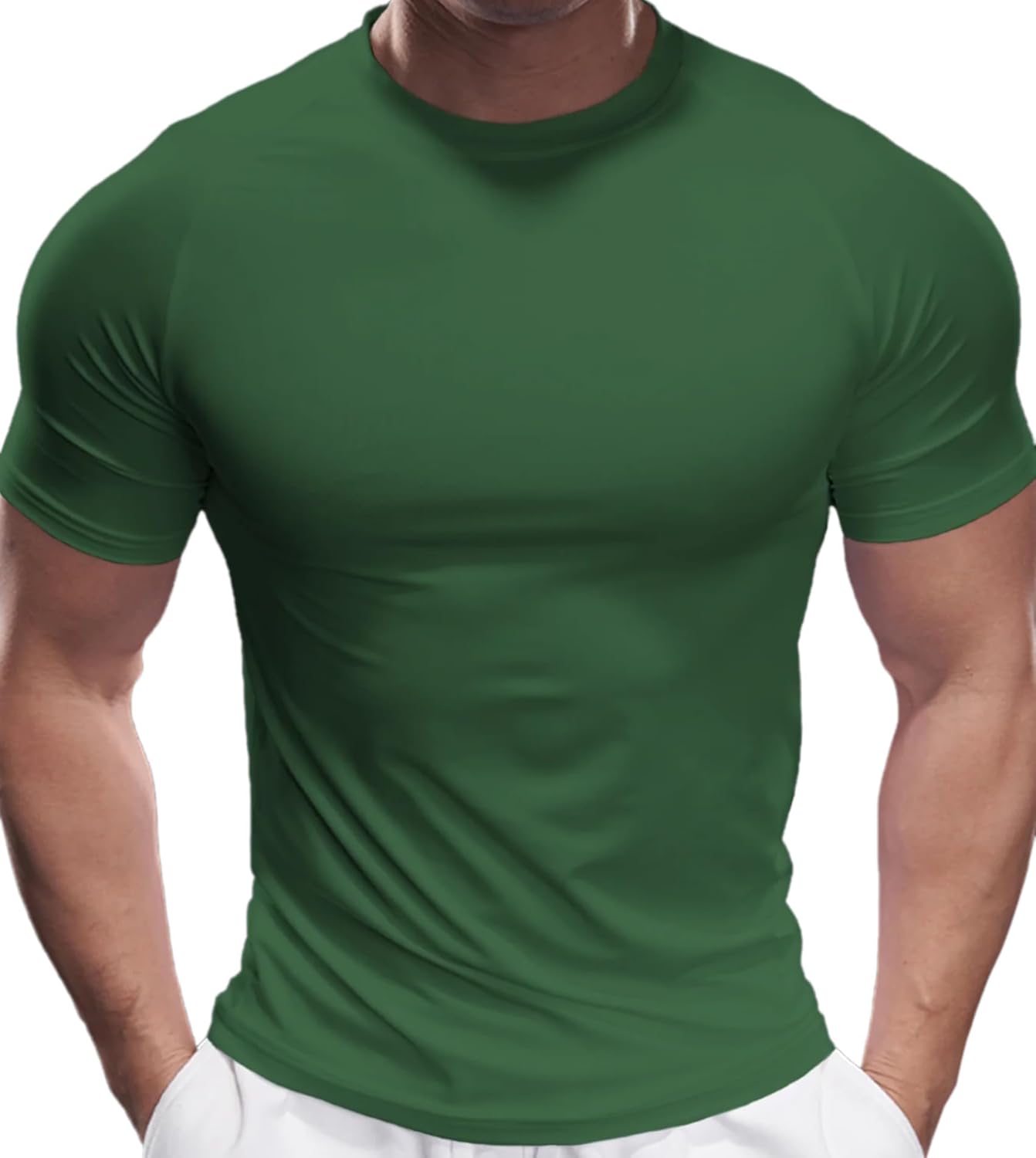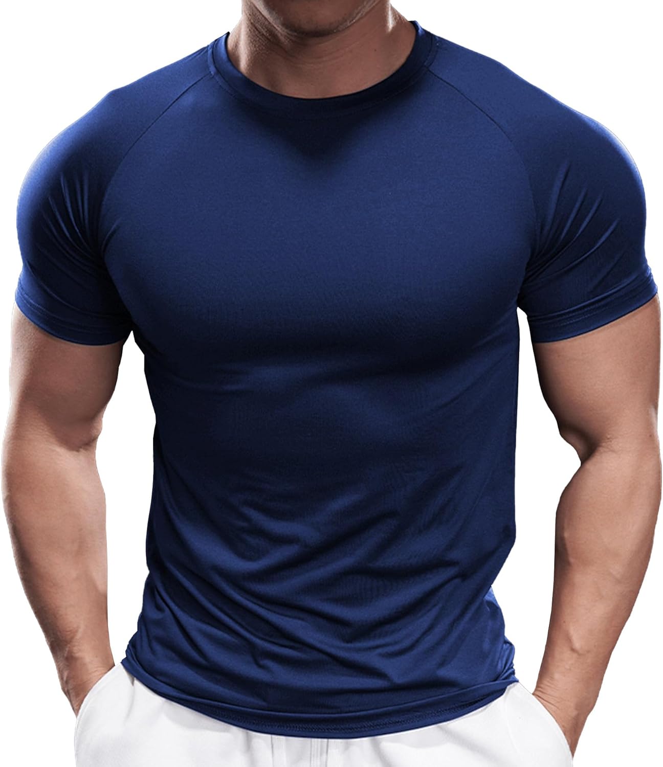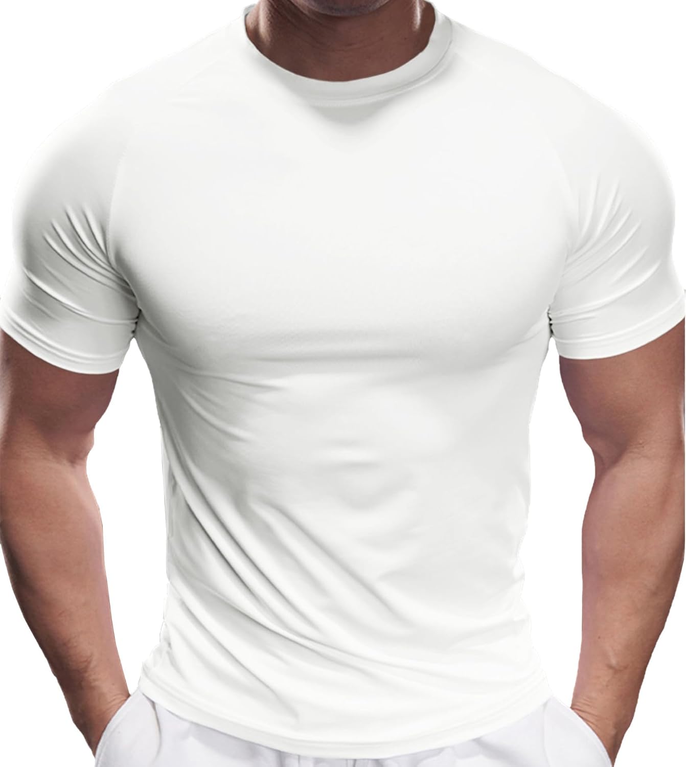 Fioboc Compression Shirts for Men Active Crew Neck Tee Moisture Wicking Quick Dry Mens Workout Shirts S-4XL