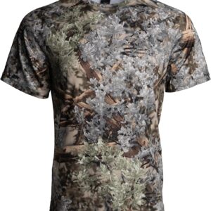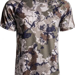 - Available in camo & solid options, this tee features a crew neck design & jersey knit fabric that offers lightweight concealment & flexibility, making it perfect for a variety of outdoor settings.