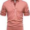 The men’s summer linen shirt can be dry cleaned, machine washed or hand washed. If necessary, the short sleeve linen shirt can be ironed at low temperature