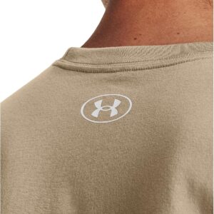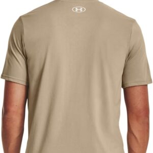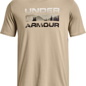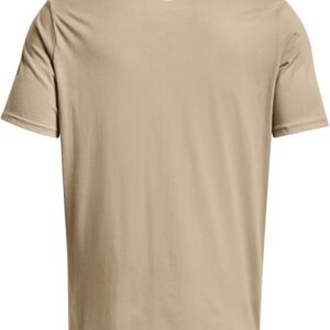 UA STACKED LOGO T-SHIRT: UA does better, get one to accompany you through your workouts and improve your performance. Ribbed collar CARE: Wash garment inside out; Machine wash cold with like colors; Use only non-chlorine bleach when needed; Tumble dry low; Do not iron; Do not use fabric softeners; Do not dry clean. Adult/Men. Front graphic with brand name and UA logo.
