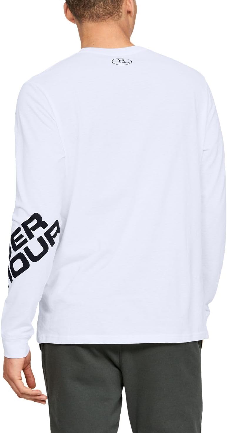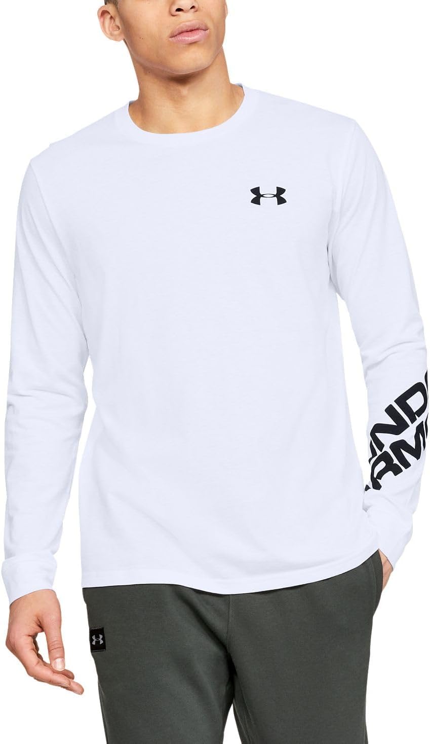 Under Armour Men’s Wordmark Sleeve Long Sleeve Tee (US, Alpha, Large, Regular, Regular, 100 White/Black)